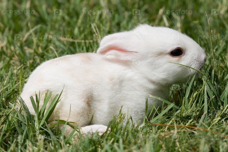 Белый кролик на траве