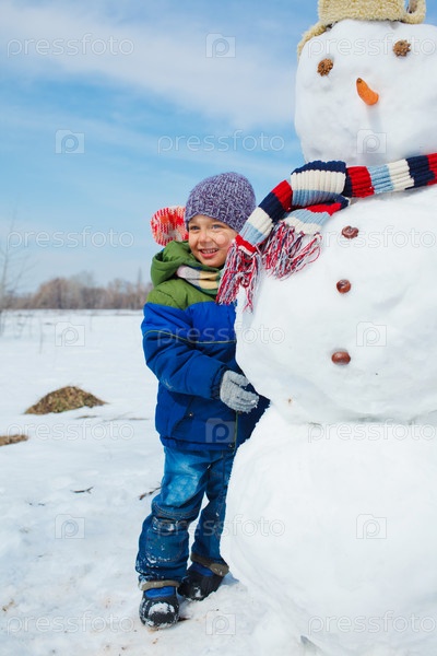 Мальчик делает снеговика
