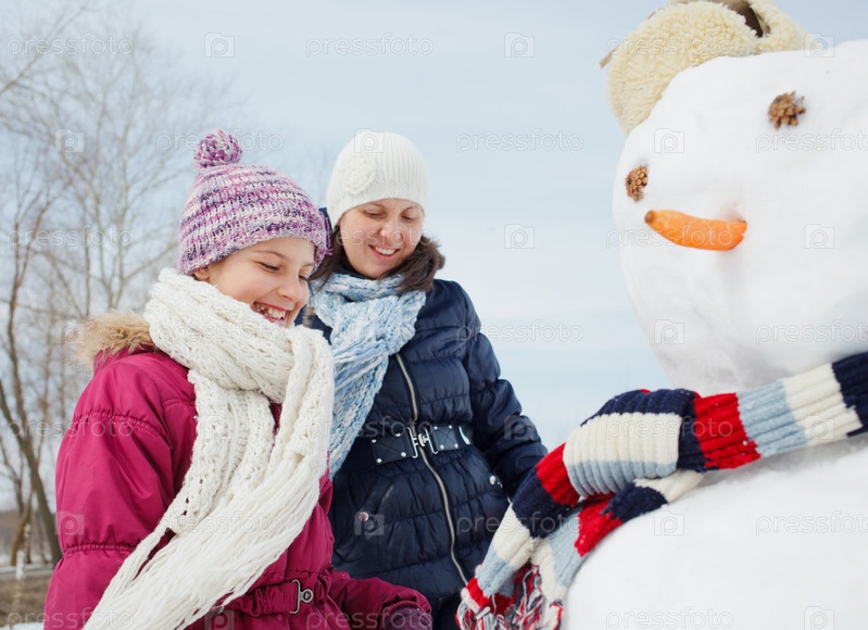 Семья со снеговиком