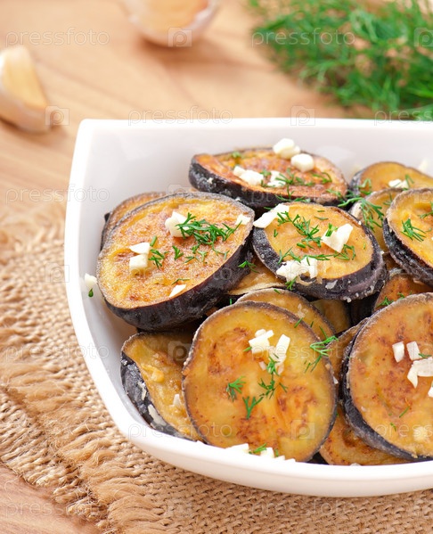 Жареные баклажаны с чесноком и укропом