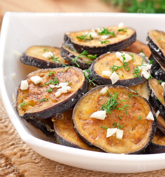 Жареные баклажаны с чесноком и укропом