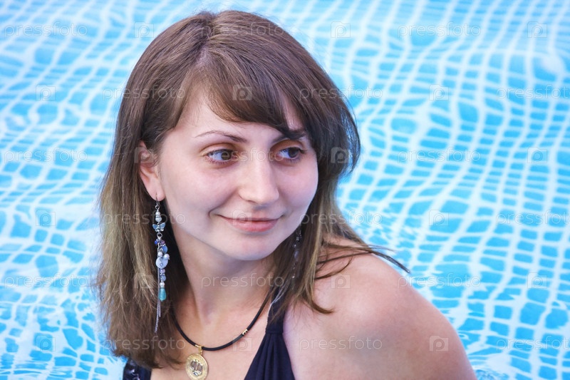 Молодая симпатичная женщина в бассейне