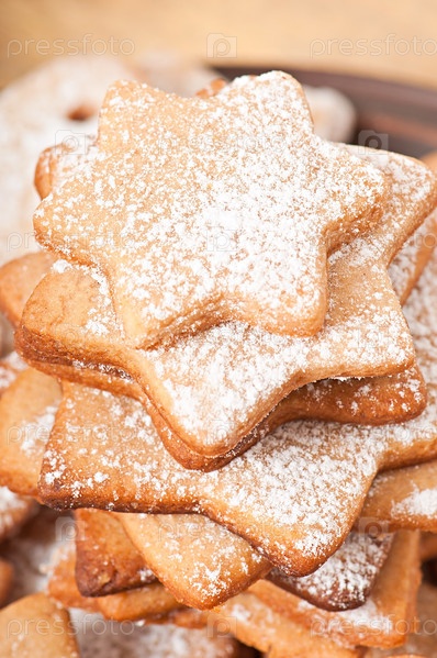 Домашнее рождественское печенье, посыпанное сахарной пудрой
