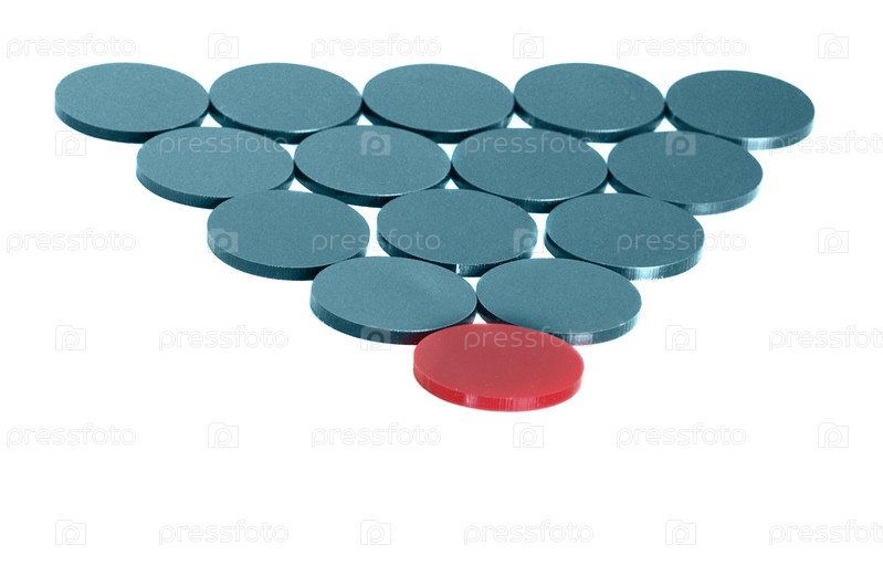 Синие и красная фишки, сложенные в треугольник