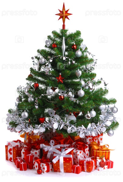 Украшенная елка на белом фоне