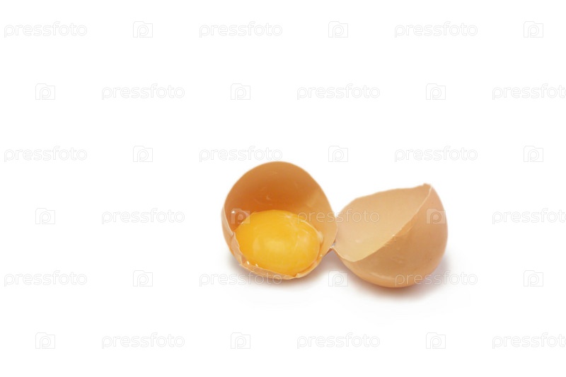 Сломанное яйцо пополам, лежащее на белом фоне