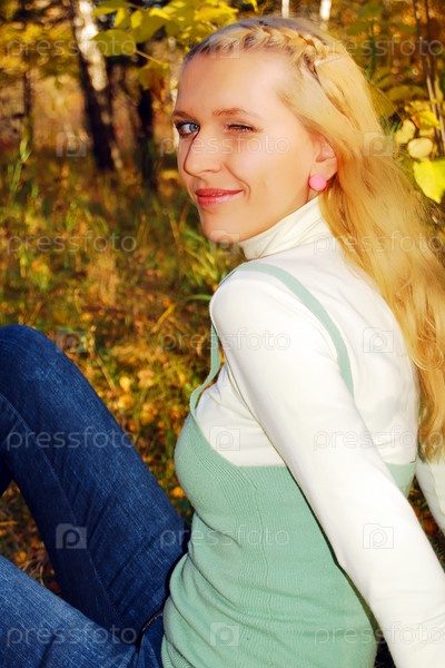 Портрет симпатичной блондинки в парке осенью