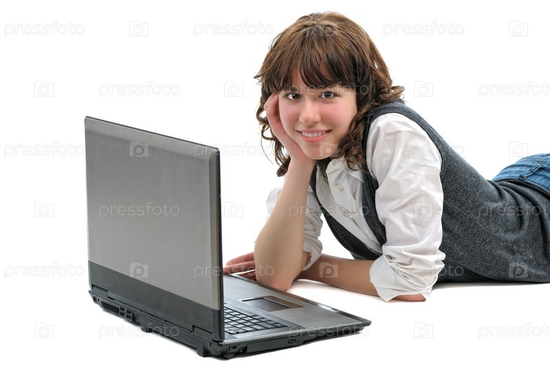 Портрет девочки-подростка с ноутбуком