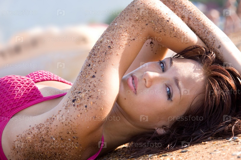 Молодая девушка лежит на берегу моря