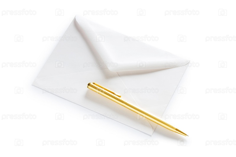 Ручка и конверт на белом фоне