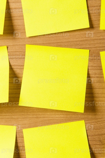 Желтые стикеры на коричневом фоне крупным планом