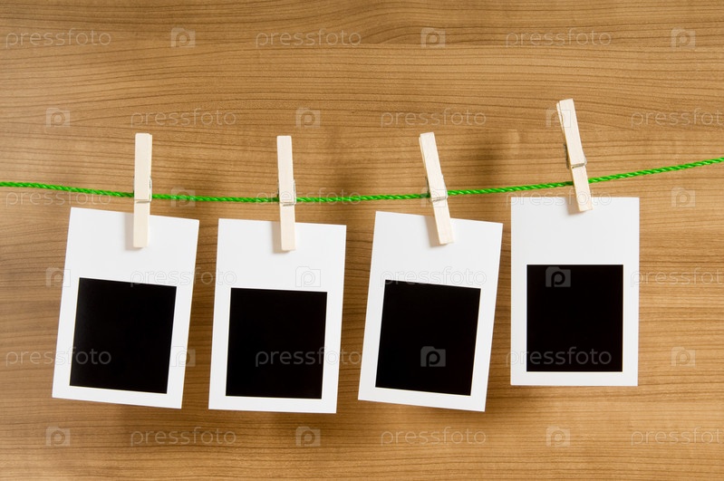 Пустые фоторамки для фотографий на прищепках