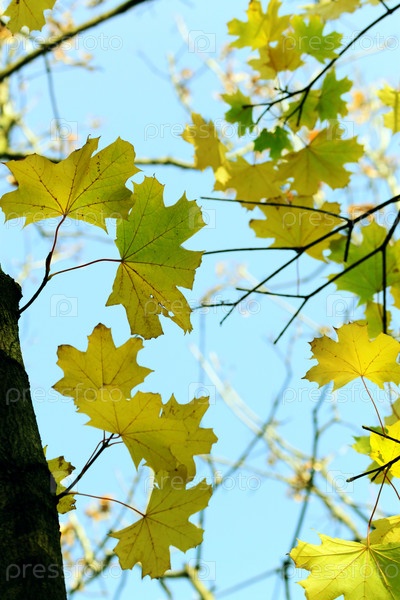 Осенние листья клена на фоне неба