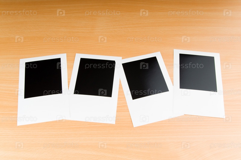 Четыре пустые фоторамки на деревянном фоне крупным планом