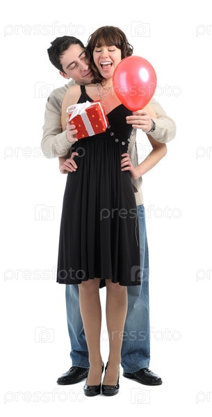Пара с подарком на белом фоне