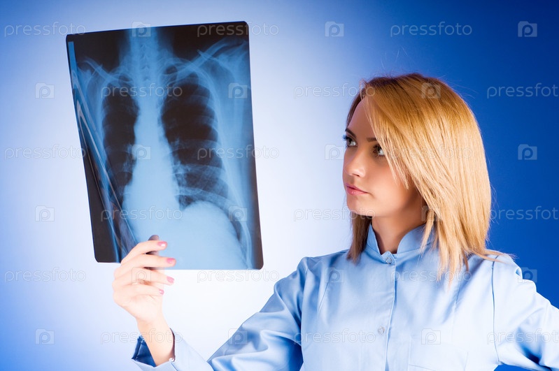 Девушка-врач внимательно рассматривает ренгеновский снимок