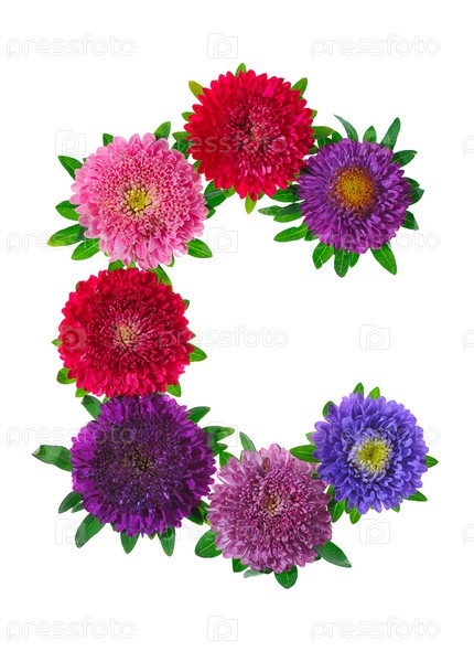 Буква "С" выложена из цветов на белом фоне