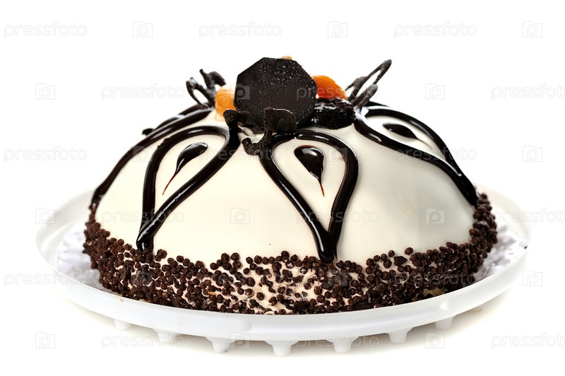 Торт-безе с шоколадом и фруктами, изолирован на белом