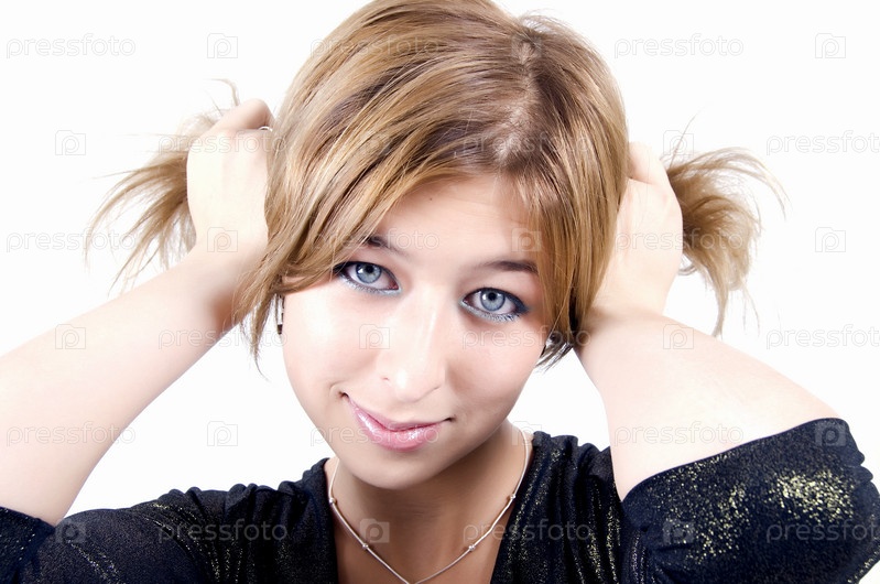 Портрет девушки, делающей хвостики