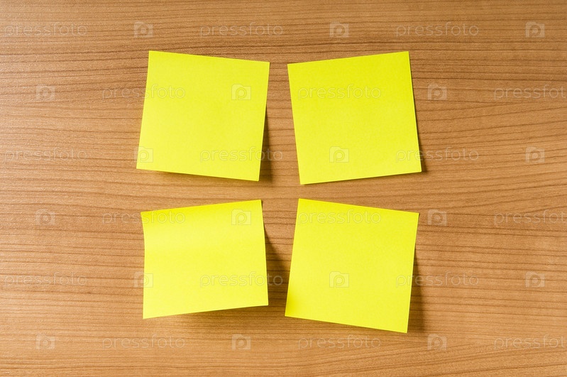 Желтые стикеры на деревянном фоне