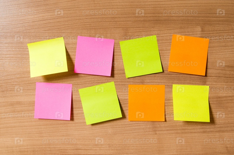 Разноцветные стикеры на деревянном фоне