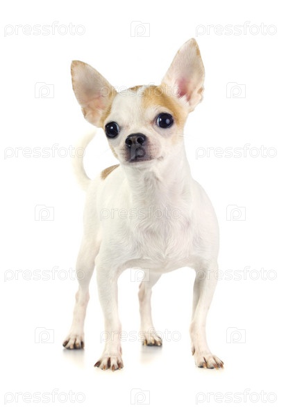 Собака породы чихуахуа на белом фоне