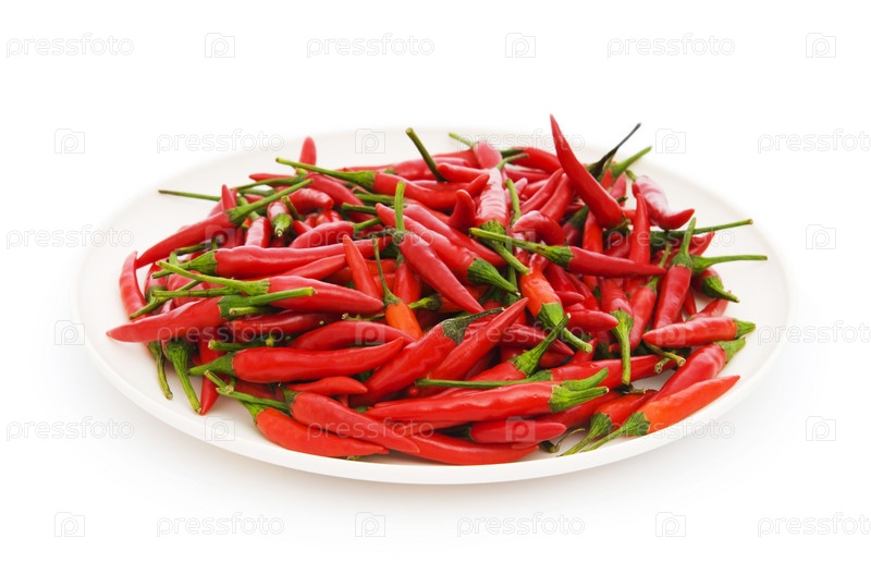 Красный жгучий перец на белой тарелке