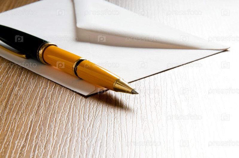 Шариковая ручка лежит на пустом почтовом конверте