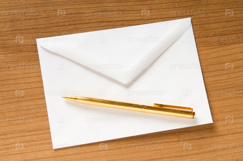 Шариковая ручка лежит на пустом бумажном конверте