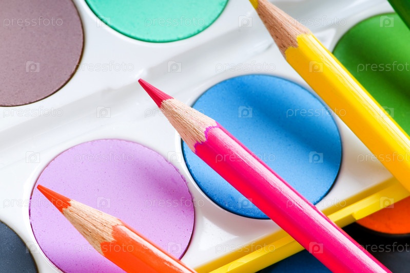 Цветные карандаши и краски