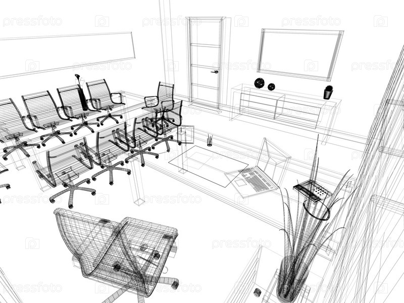 Современный интерьер офиса, 3D-изображение