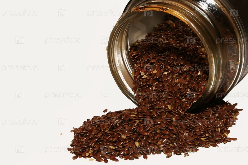 Семена льна, высыпанные из банки