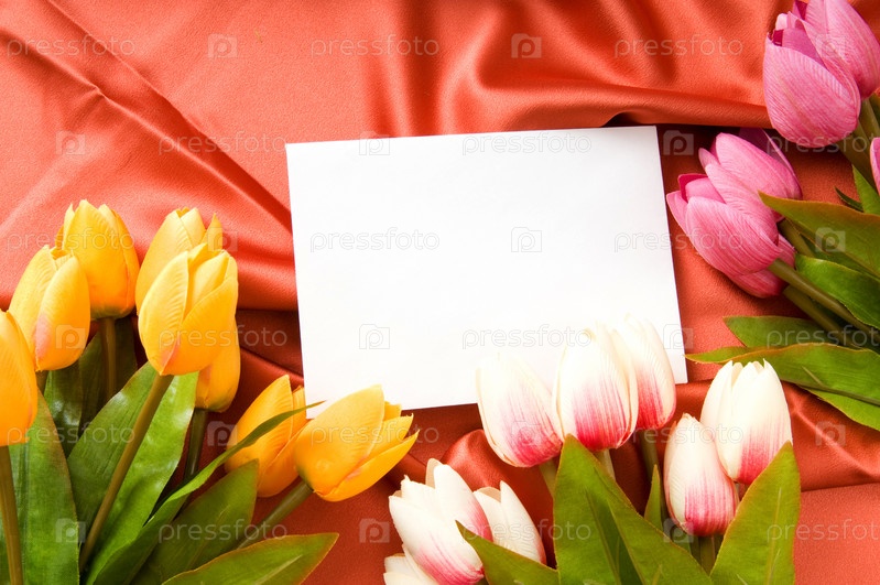 Конверт и цветы на красном фоне