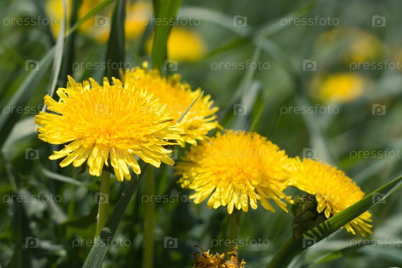 Желтые одуванчики в траве