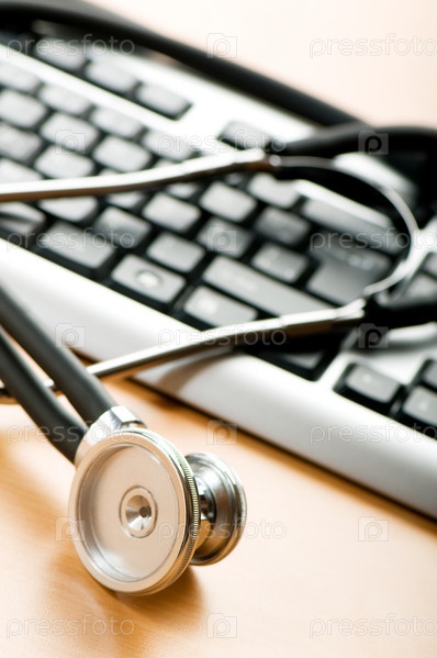 Стетоскоп лежит на клавиатуре