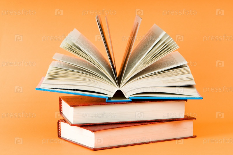 Стопка книг на желтом фоне