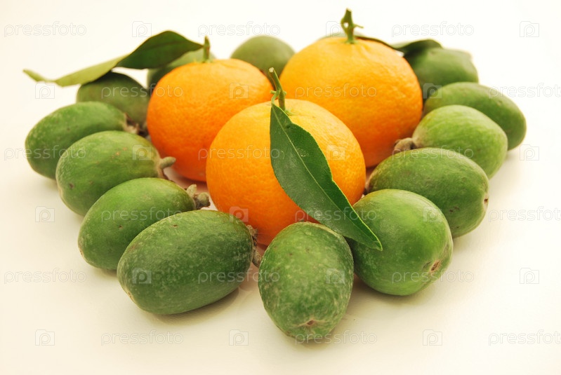 Мандарины и плоды фейхоа в мягком освещении