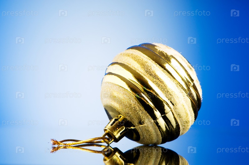 Золотой новогодний шарик на голубом фоне