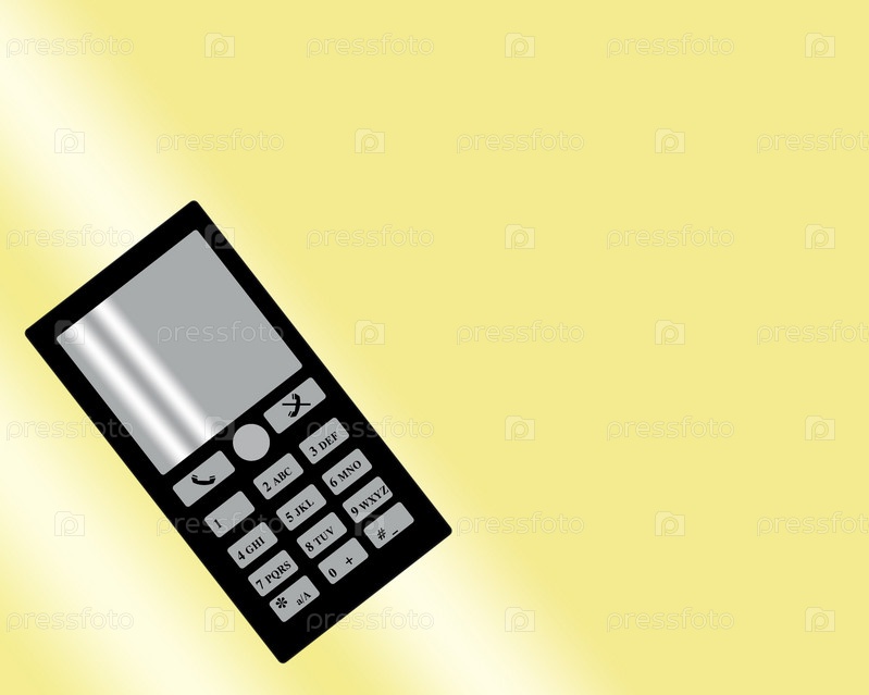 Изображение на градиентном желтом фоне черного мобильного телефона