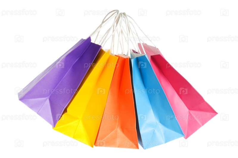 Бумажные пакеты для покупок на белом фоне