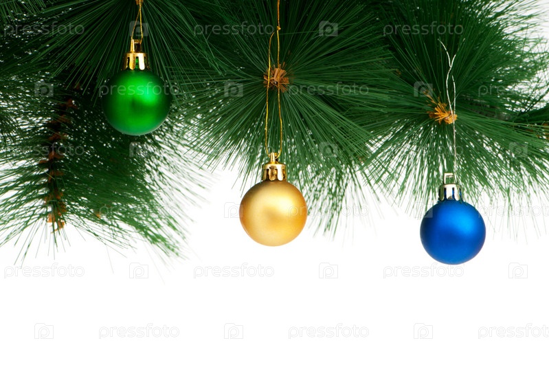 Новогодние шарики, висящие на елке