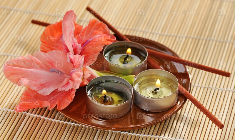 Ароматические свечи и цветок