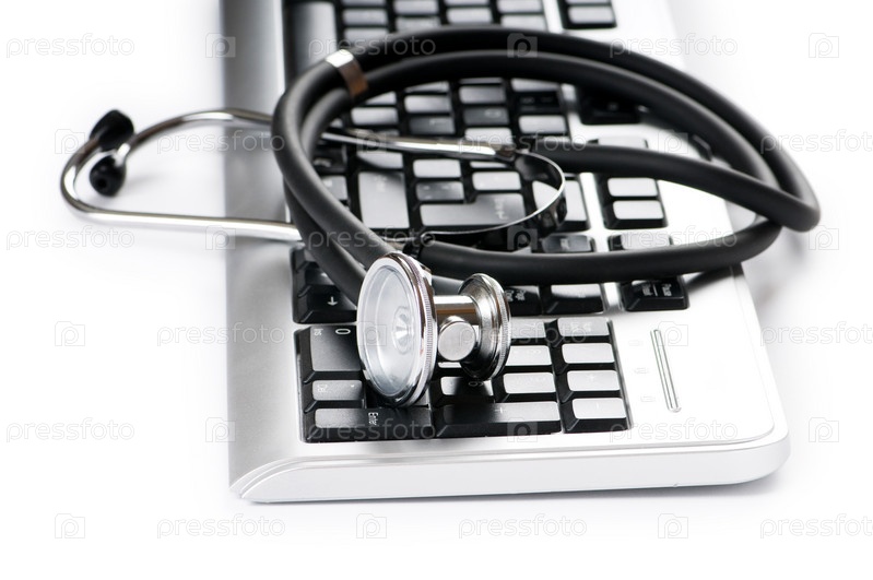 Стетоскоп лежит на клавиатуре