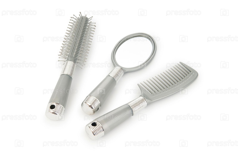 Две расчески и зеркало на белом фоне