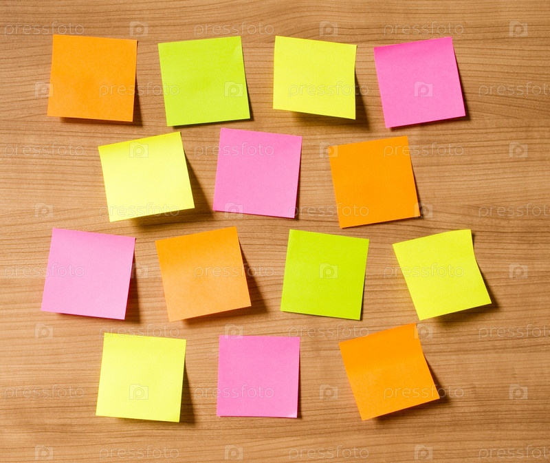 Разноцветные стикеры на фоне деревянной поверхности
