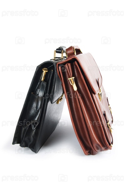 Два портфеля крупным планом на белом фоне