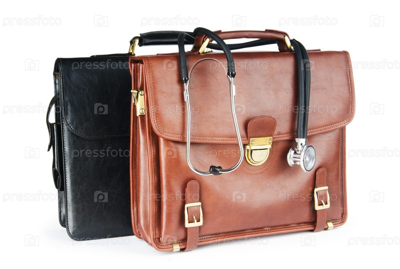 Два портфеля и медицинский стетоскоп на белом фоне
