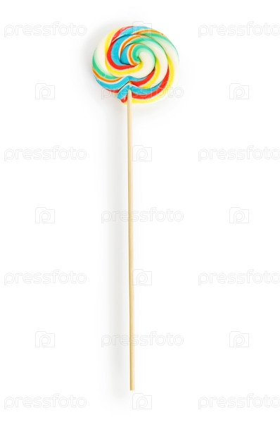 Разноцветный леденец на белом фоне крупным планом