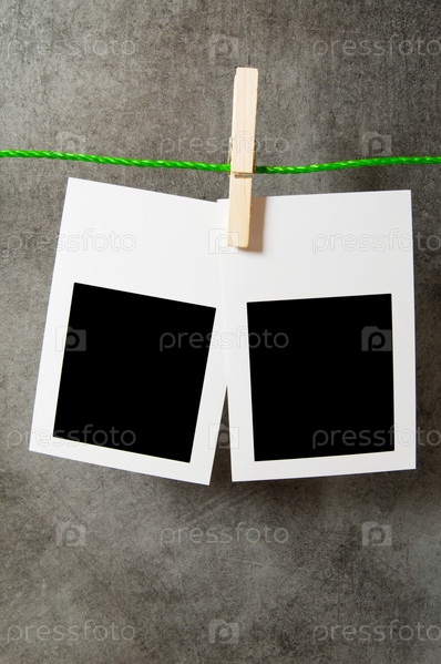 Две фоторамки для фотографий на прищепке на сером фоне