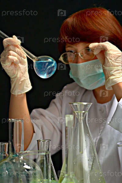Женщина работает в химической лаборатории